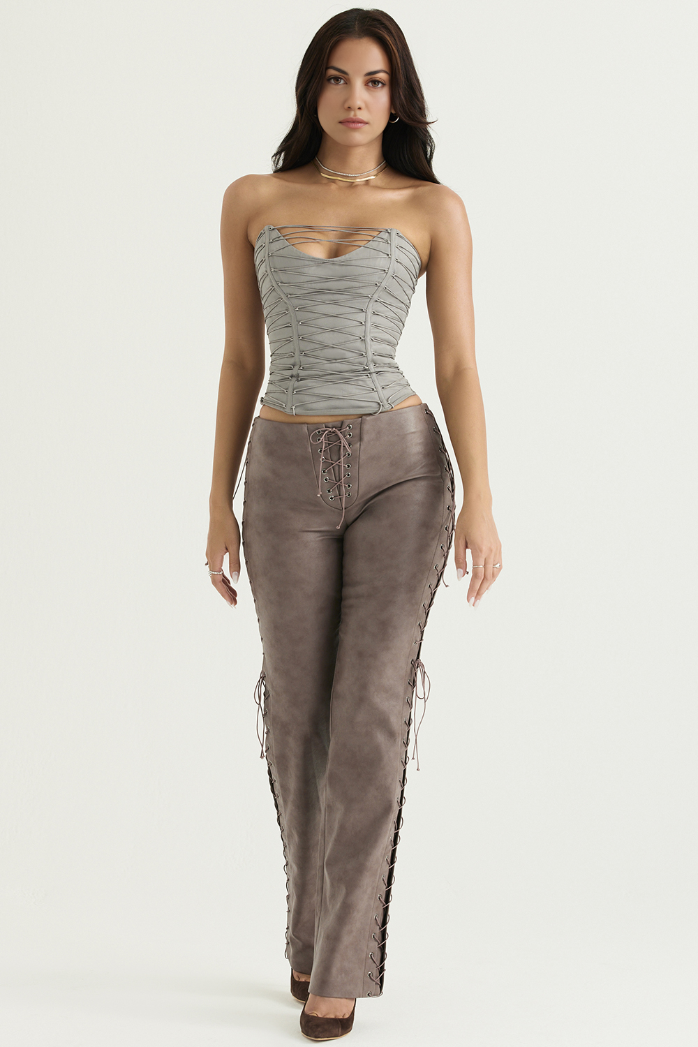 Ons Corset Modelador Daniela heeft een ritssluiting aan de achterkant voor gemakkelijk aan- en uittrekken, details met lijnen aan de voorkant en een puntige kraag die de pasvorm benadrukt.